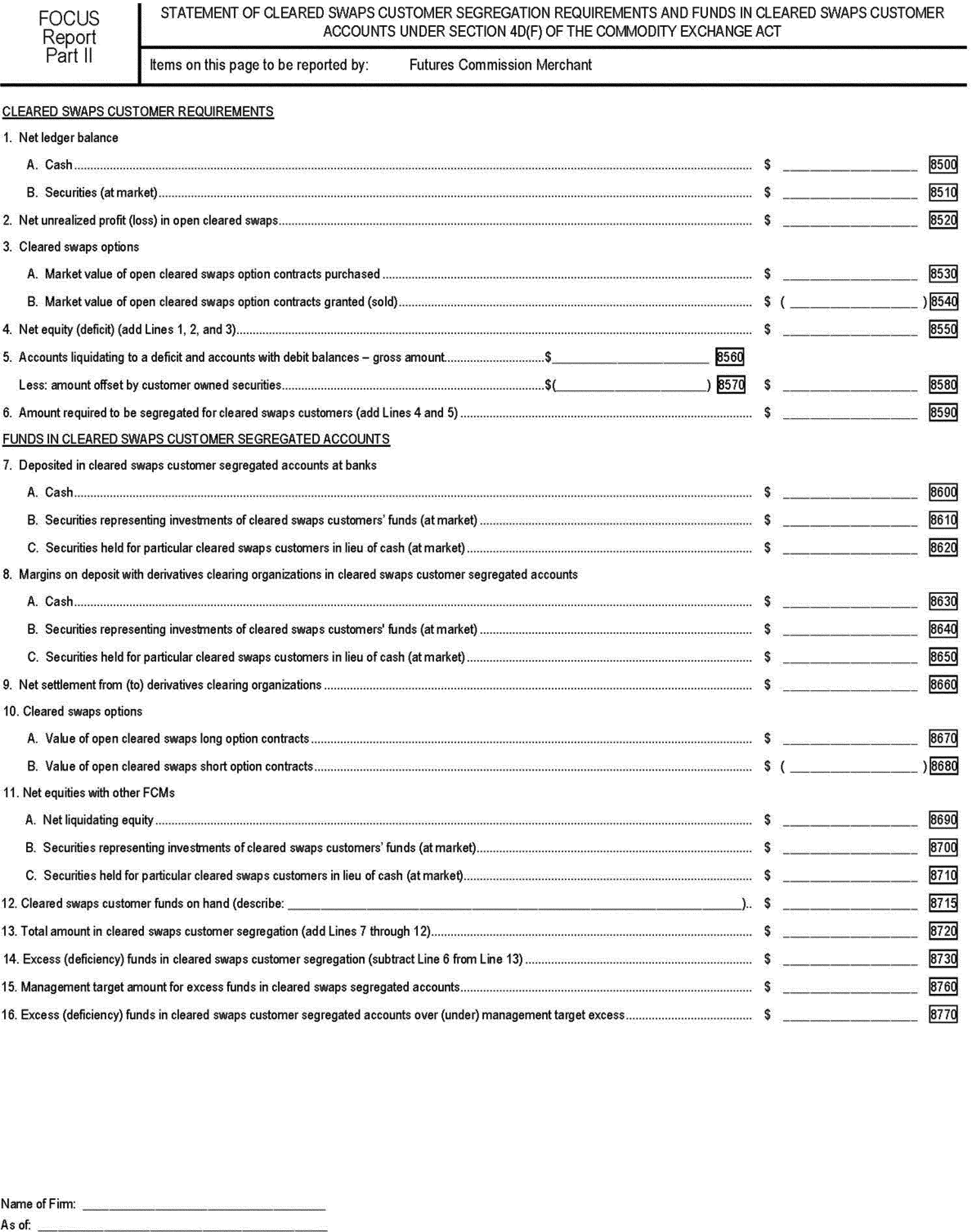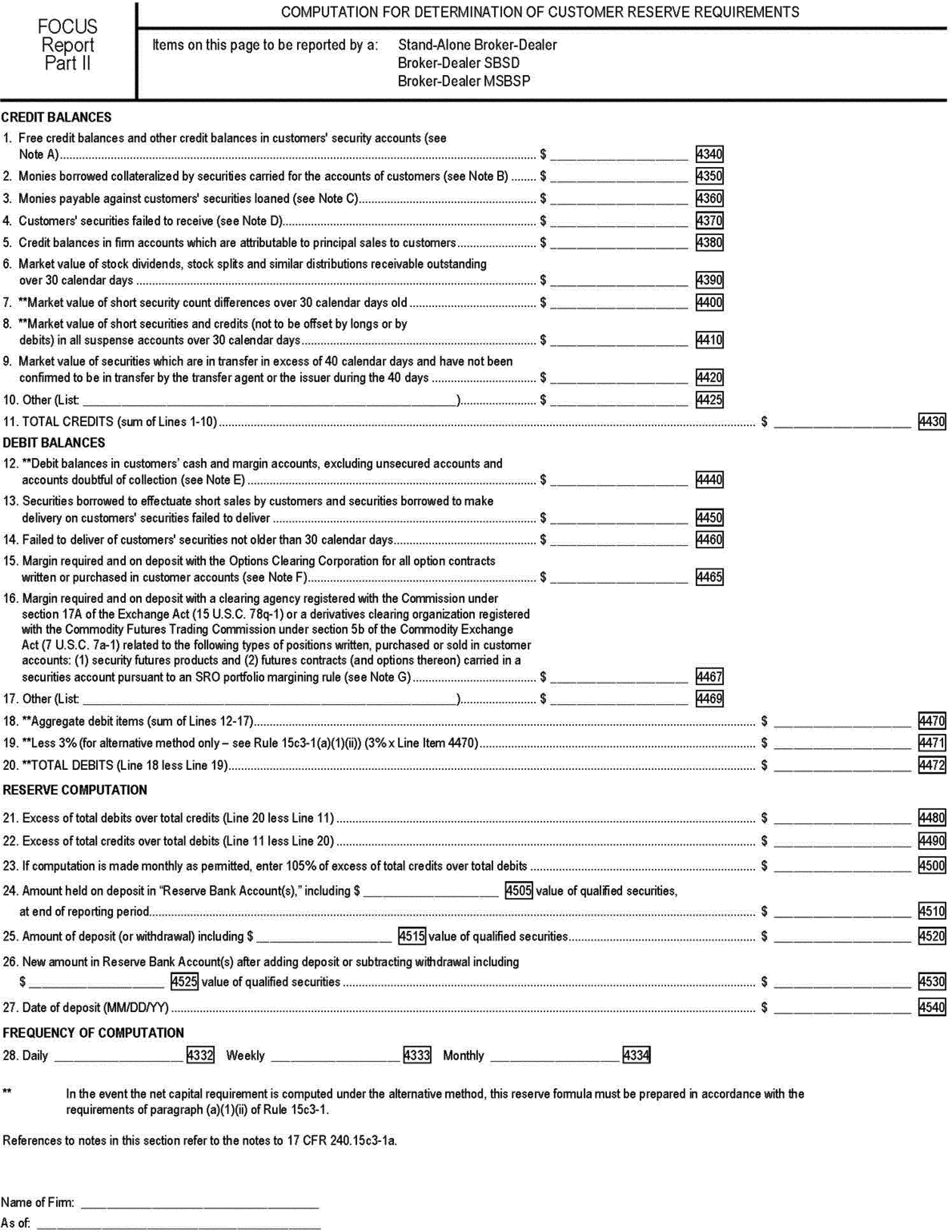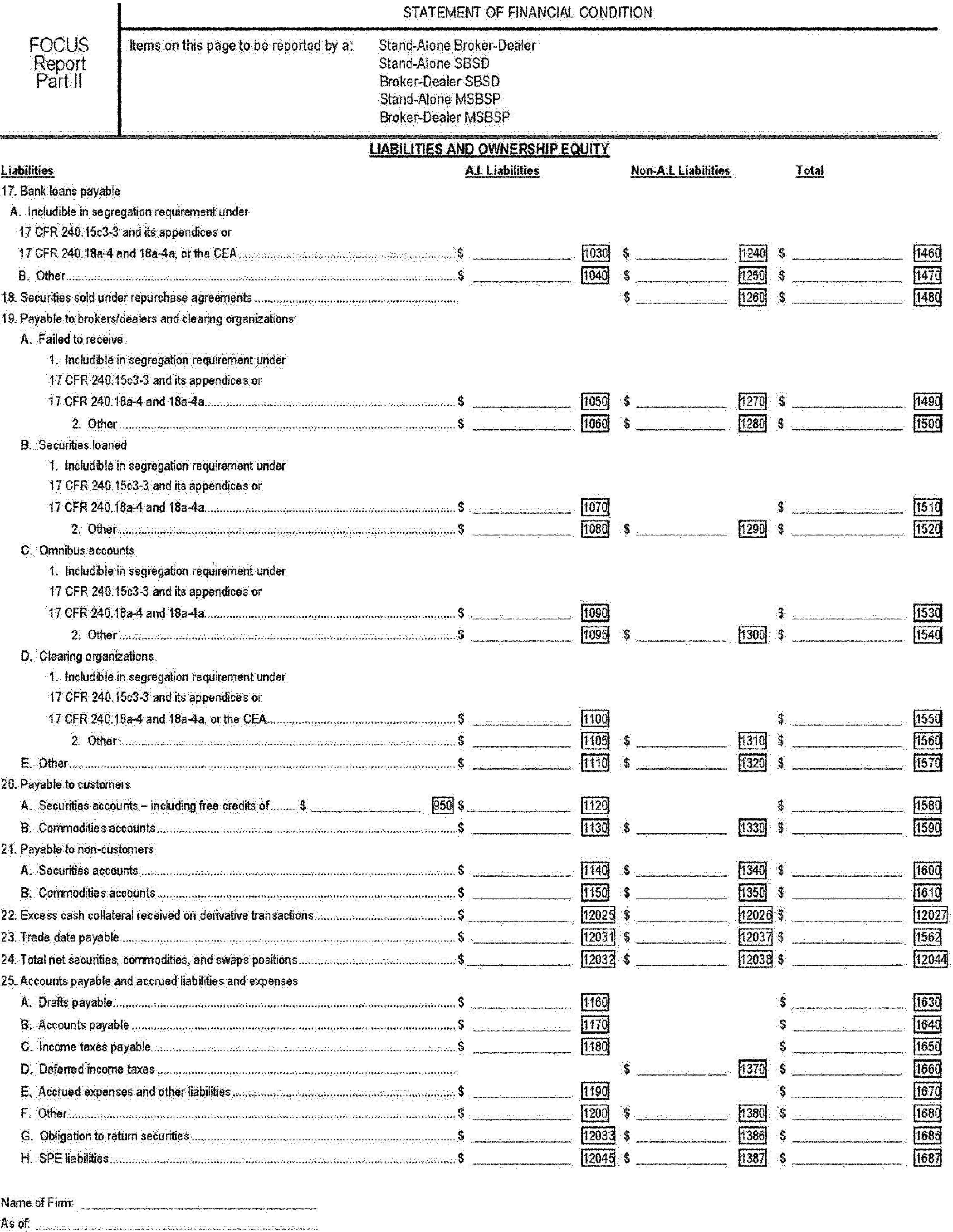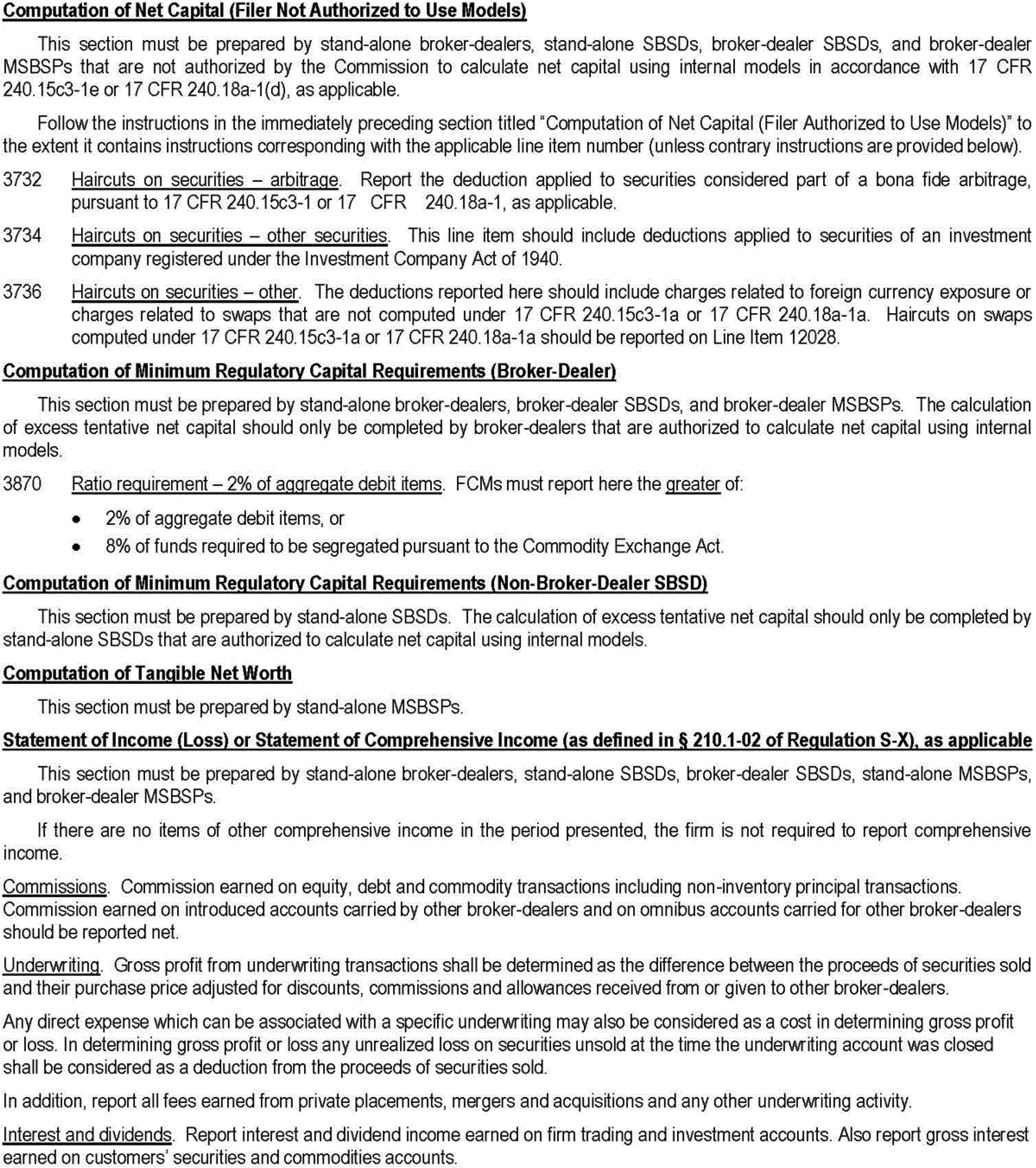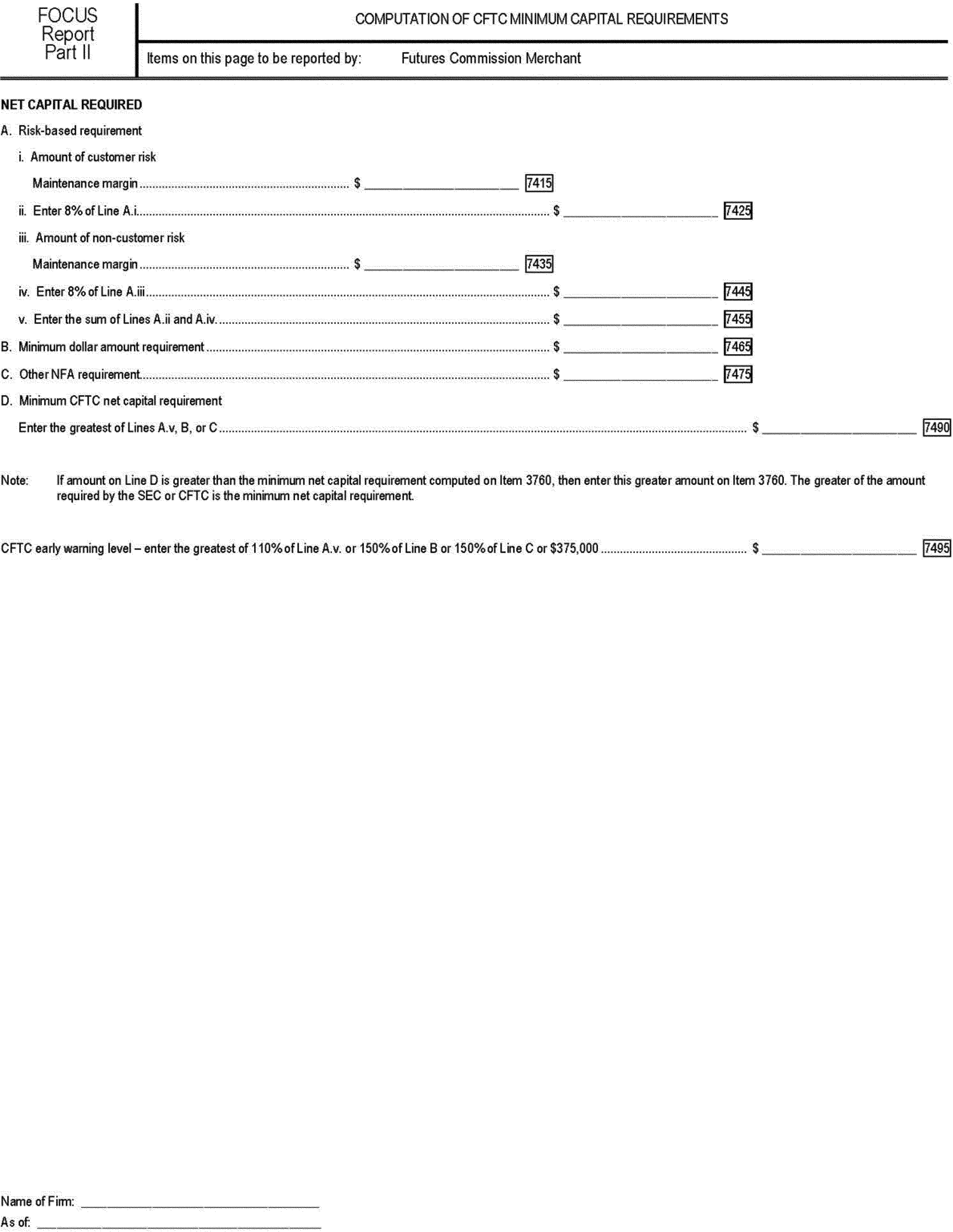 Back to Citation915. Compare FOCUS Report Part II, as amended, Computation of Tangible Net Worth, with FOCUS Report Part II, as amended, Computation of Net Capital (Filer Authorized to Use Models) and FOCUS Report Part II, as amended, Computation of Minimum Regulatory Capital Requirements (Non-Broker-Dealer SBSD).