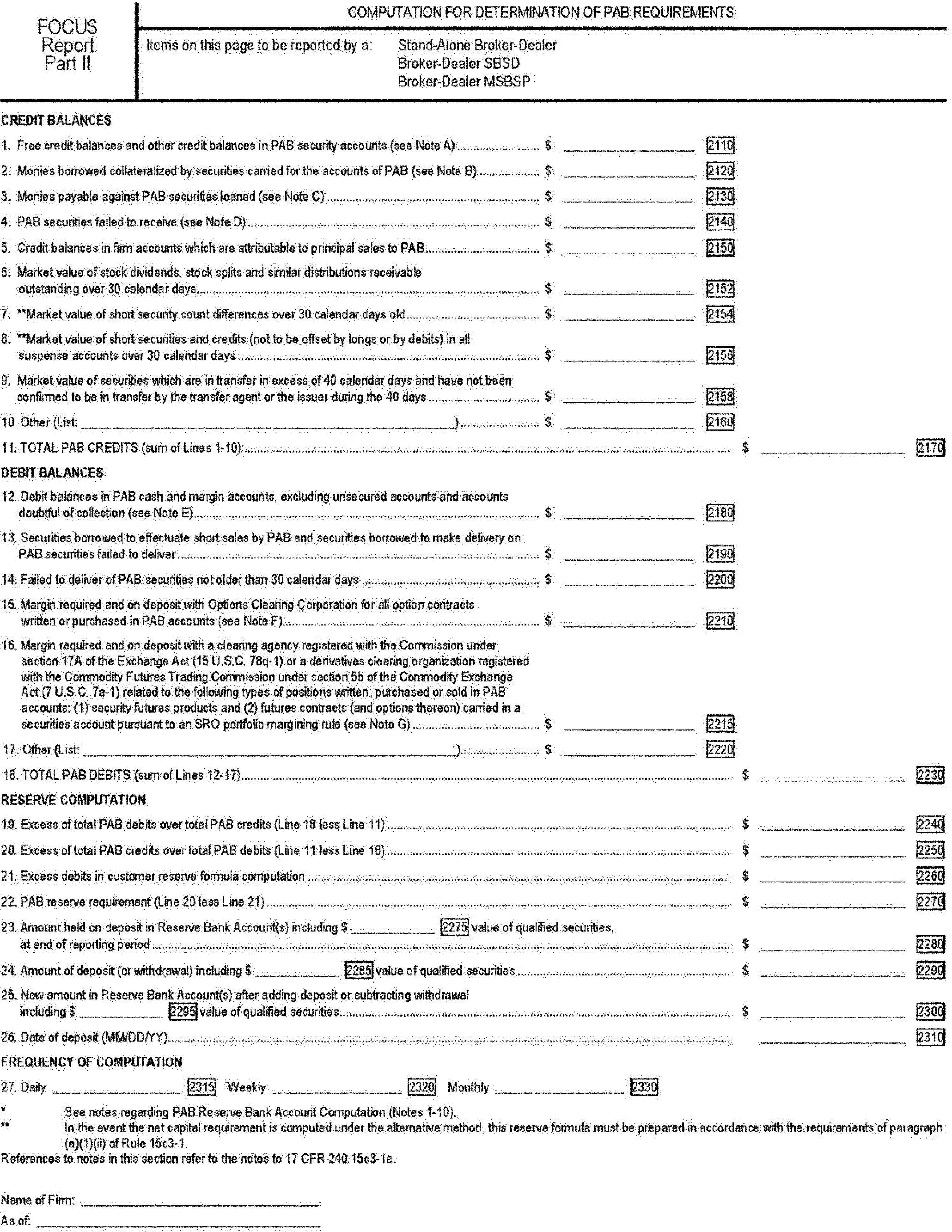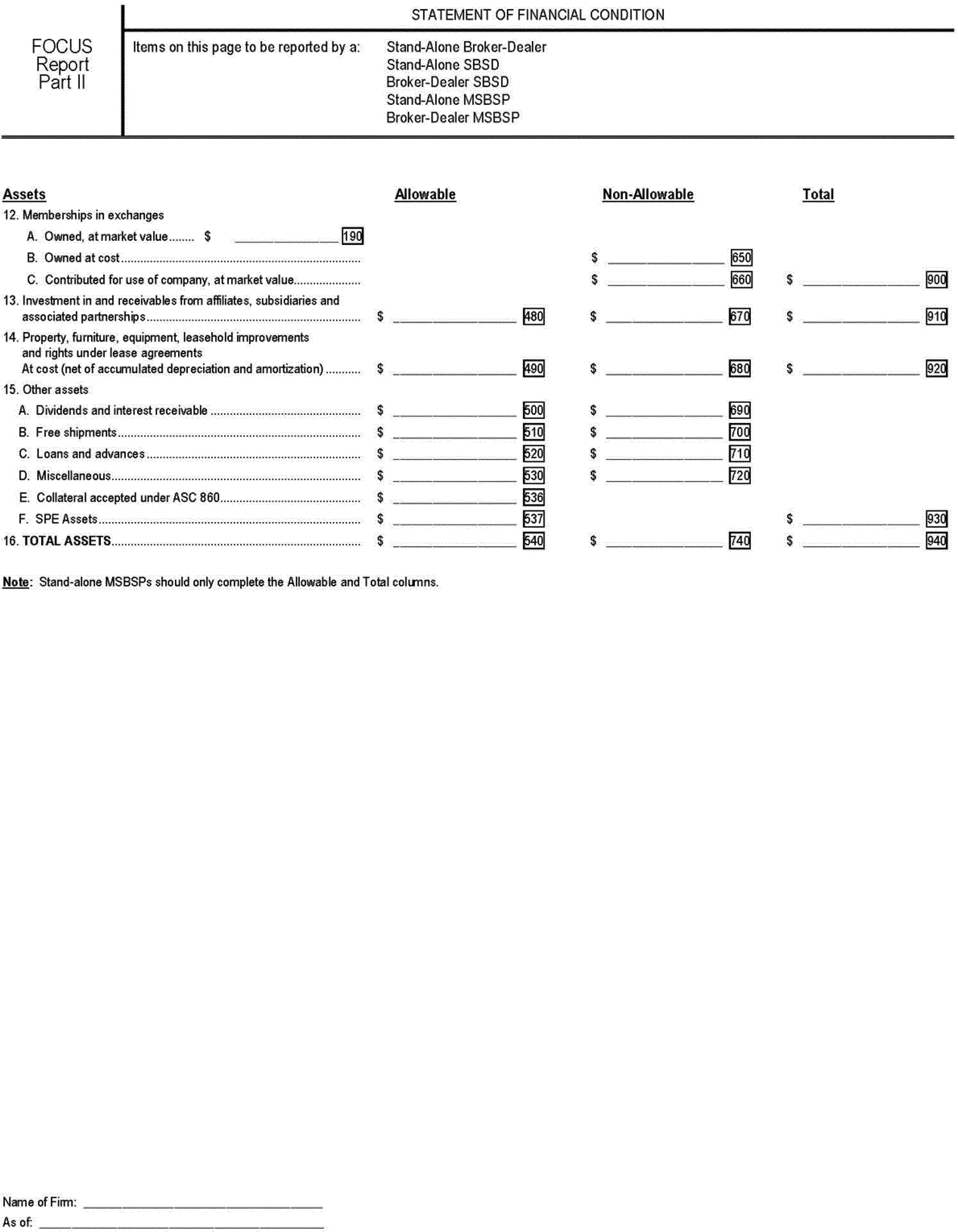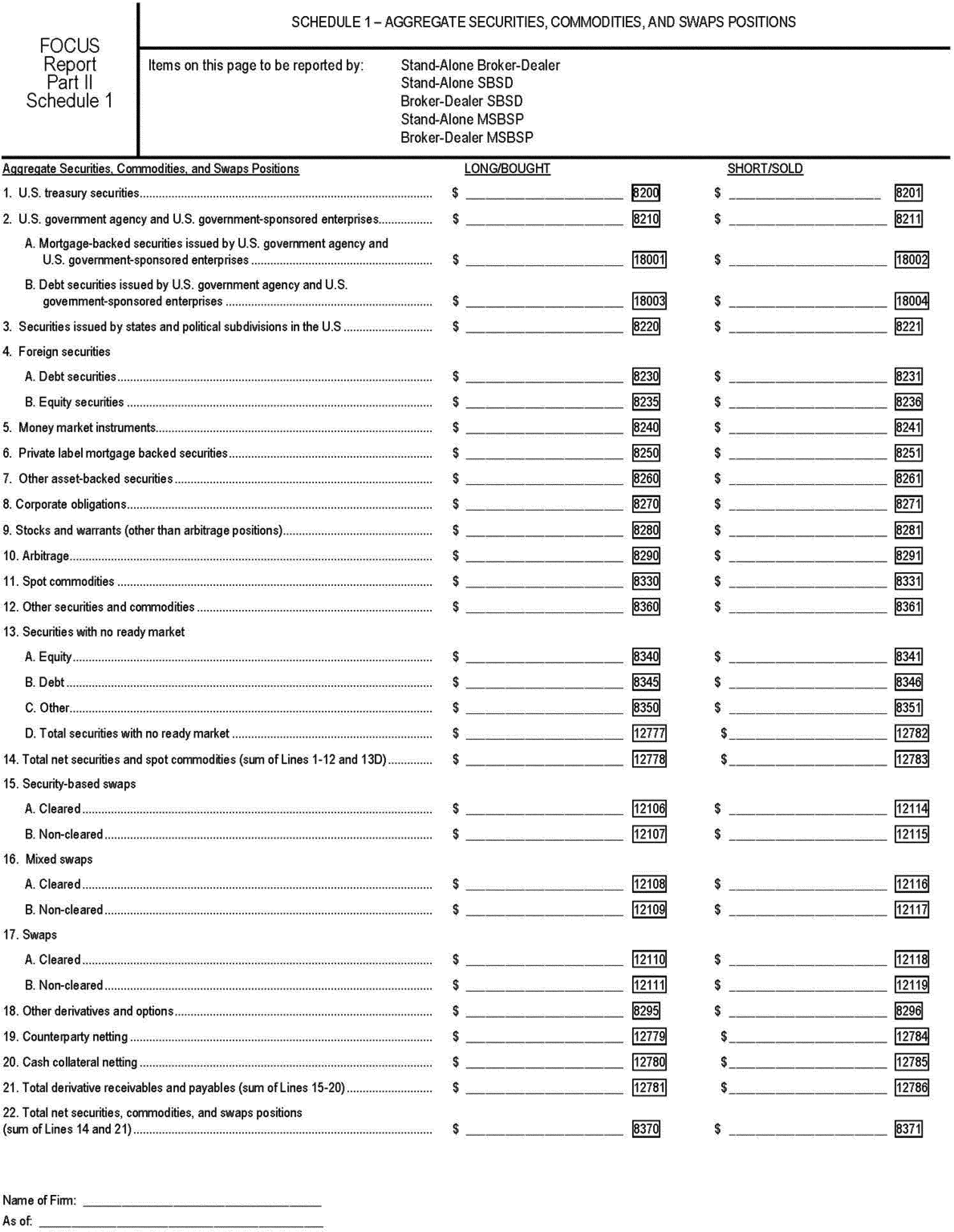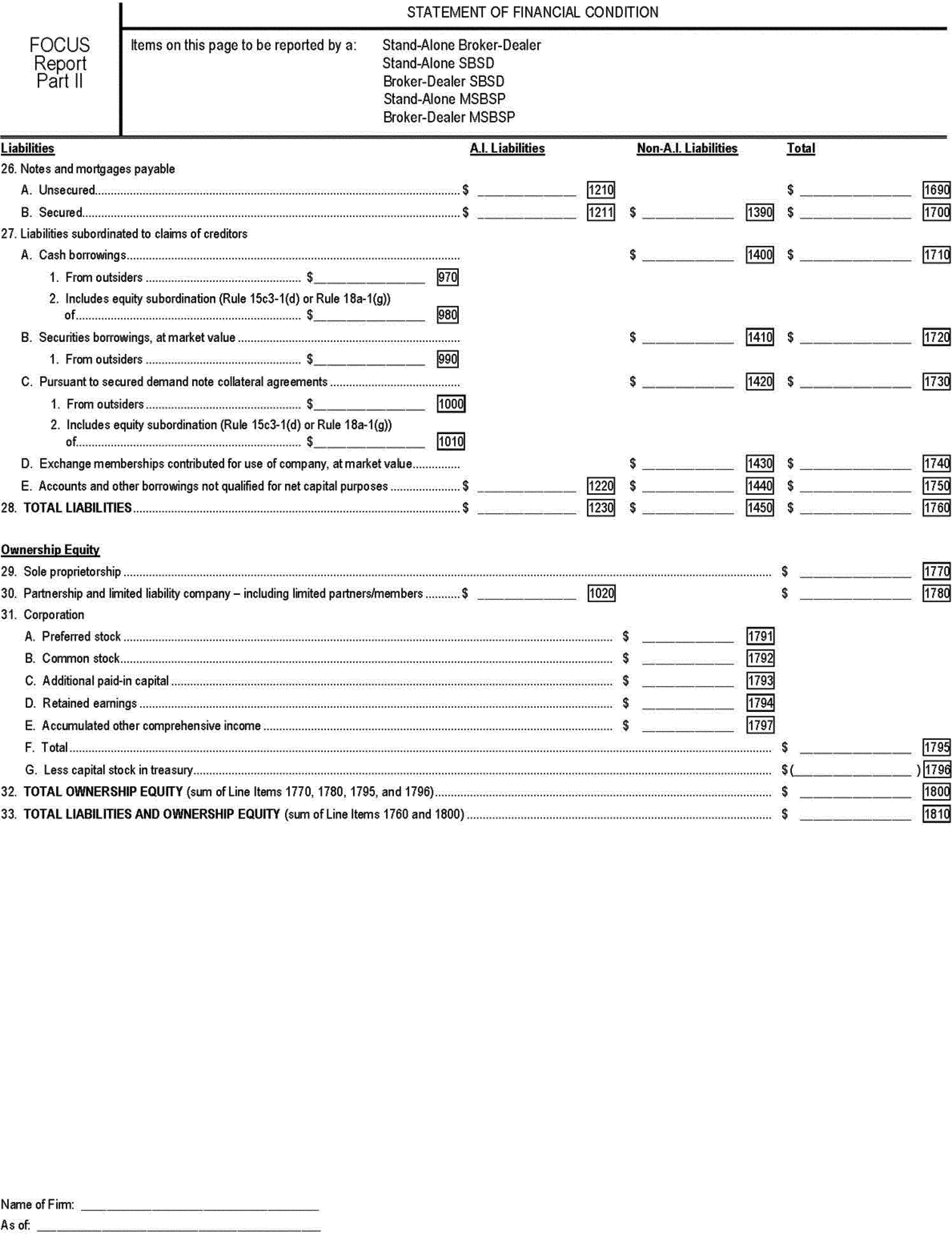 Back to Citation915. Compare FOCUS Report Part II, as amended, Computation of Tangible Net Worth, with FOCUS Report Part II, as amended, Computation of Net Capital (Filer Authorized to Use Models) and FOCUS Report Part II, as amended, Computation of Minimum Regulatory Capital Requirements (Non-Broker-Dealer SBSD).