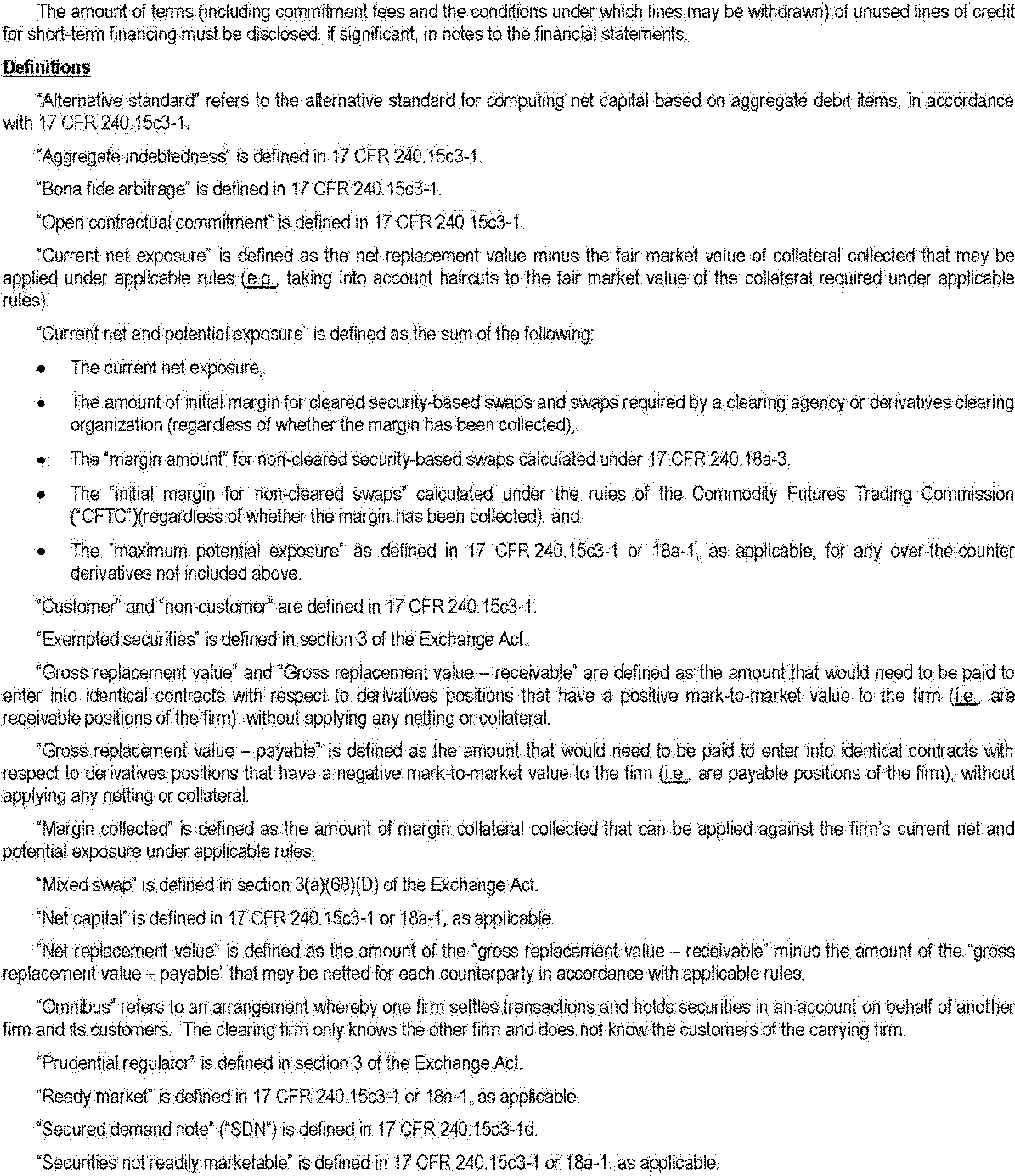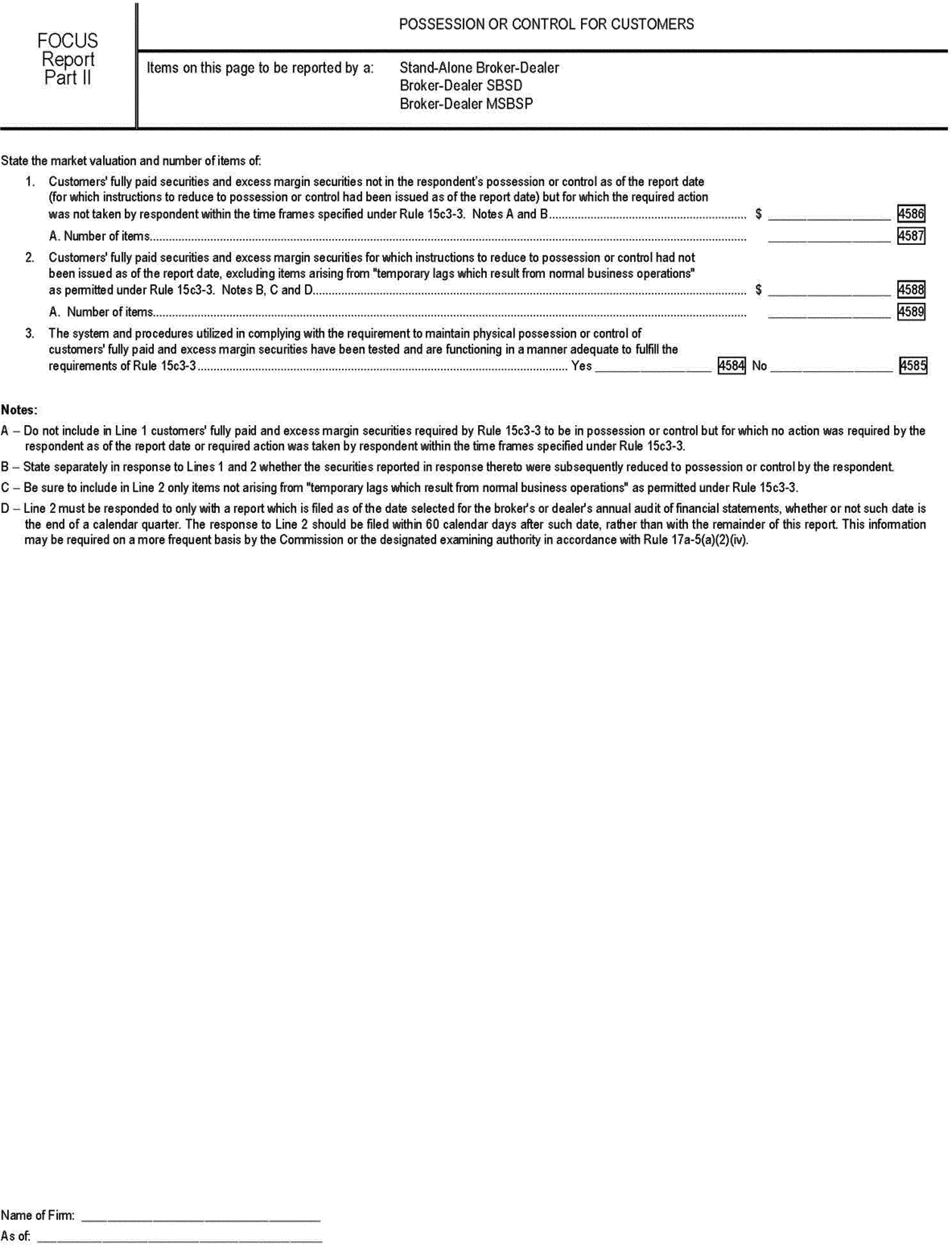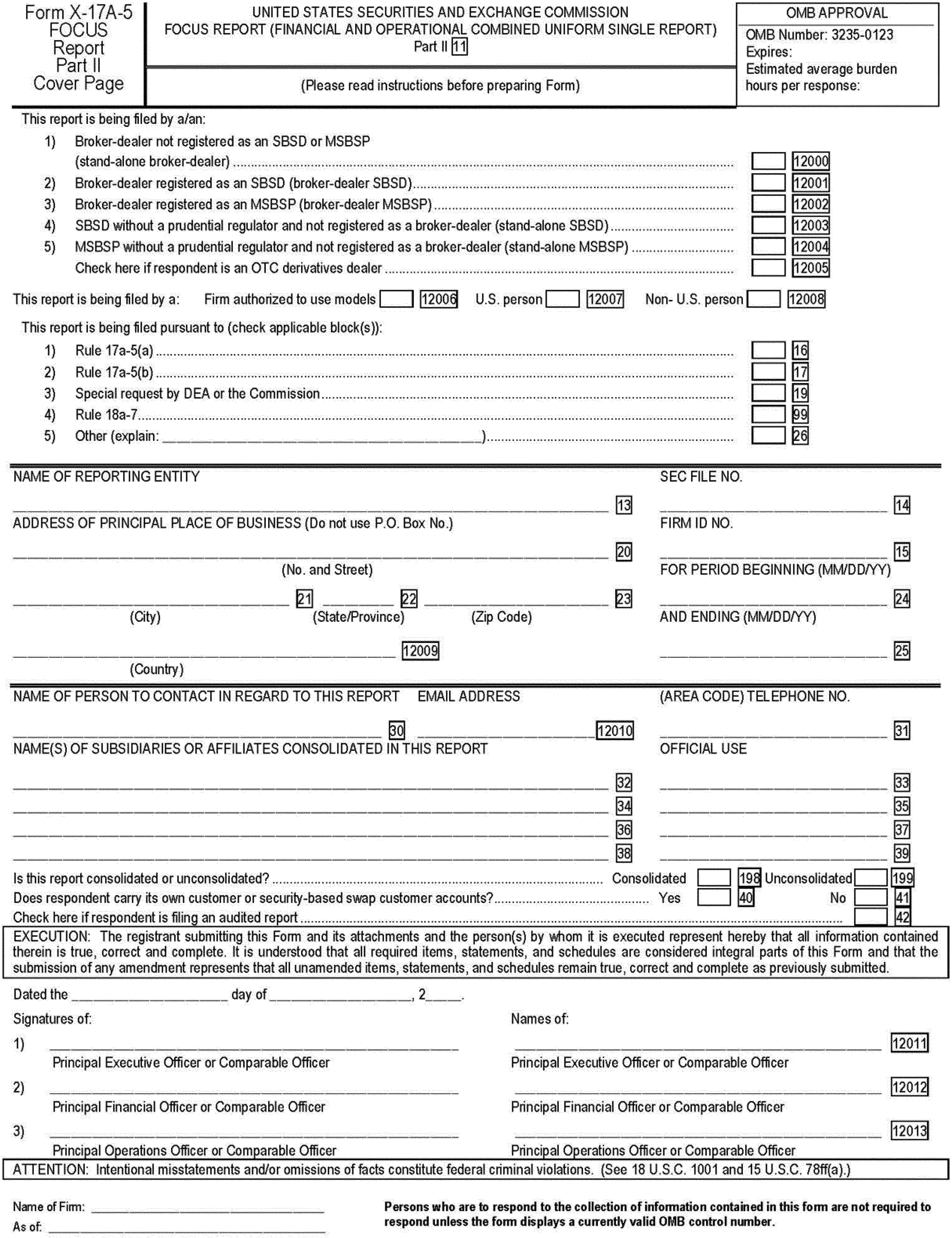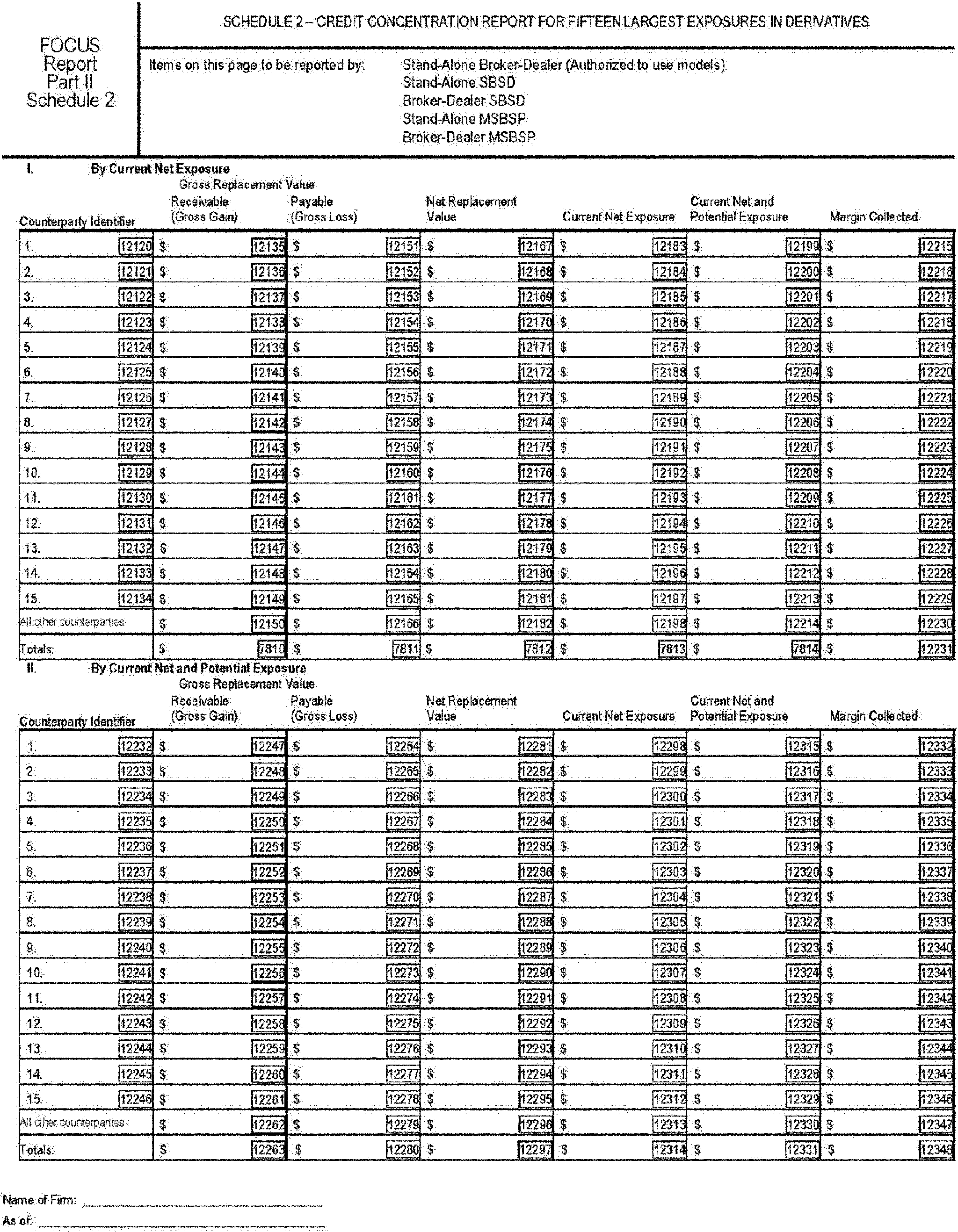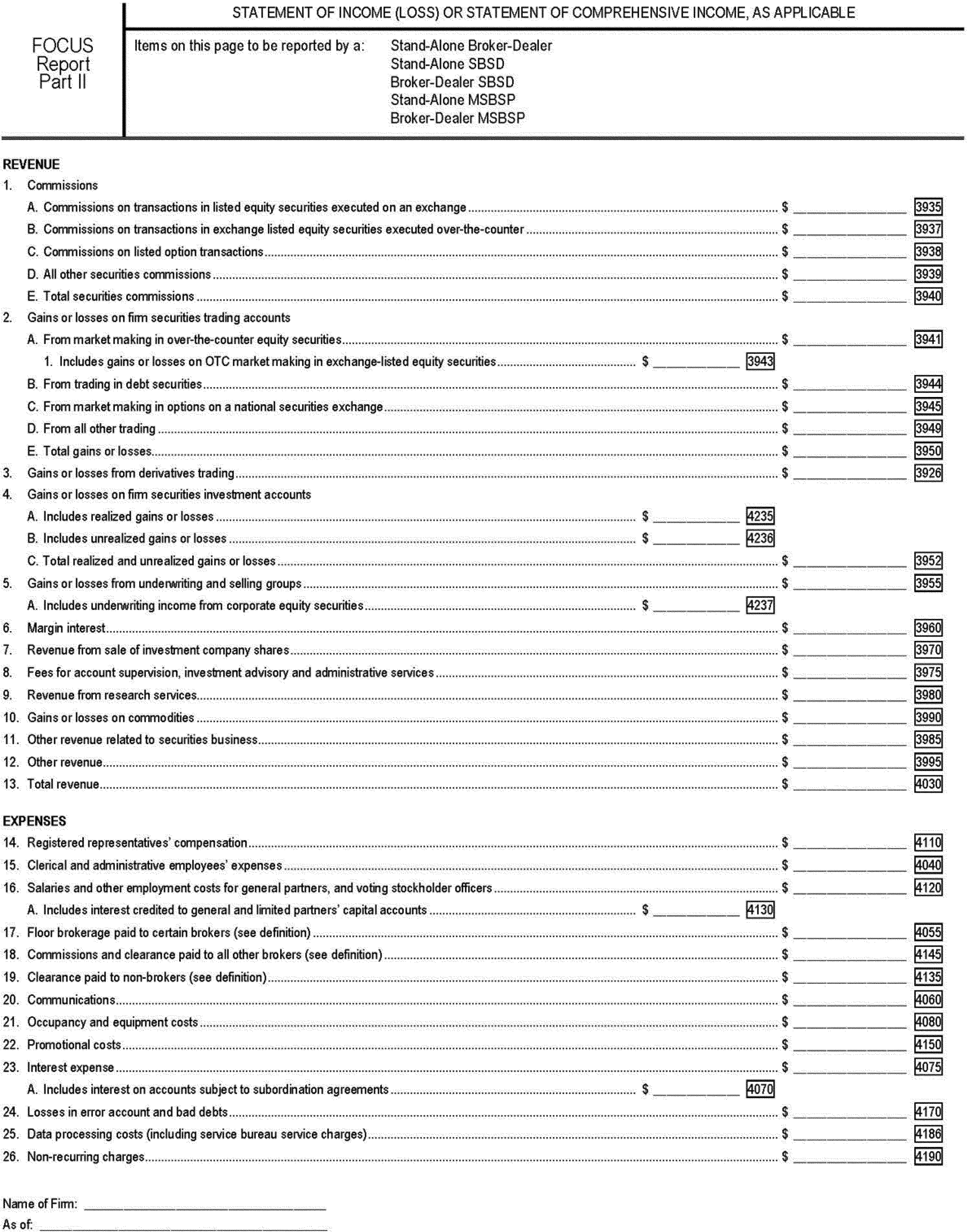 Back to Citation915. Compare FOCUS Report Part II, as amended, Computation of Tangible Net Worth, with FOCUS Report Part II, as amended, Computation of Net Capital (Filer Authorized to Use Models) and FOCUS Report Part II, as amended, Computation of Minimum Regulatory Capital Requirements (Non-Broker-Dealer SBSD).