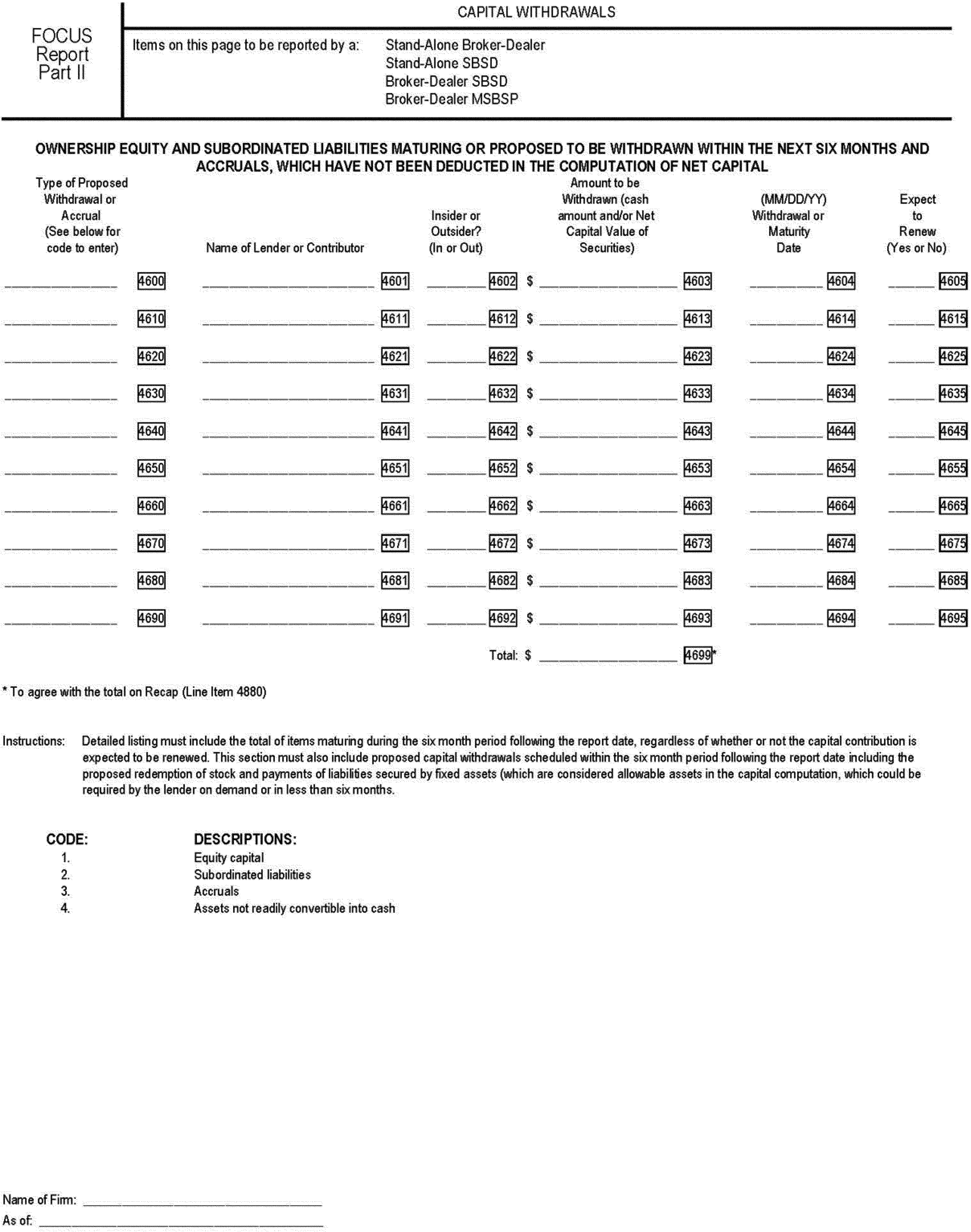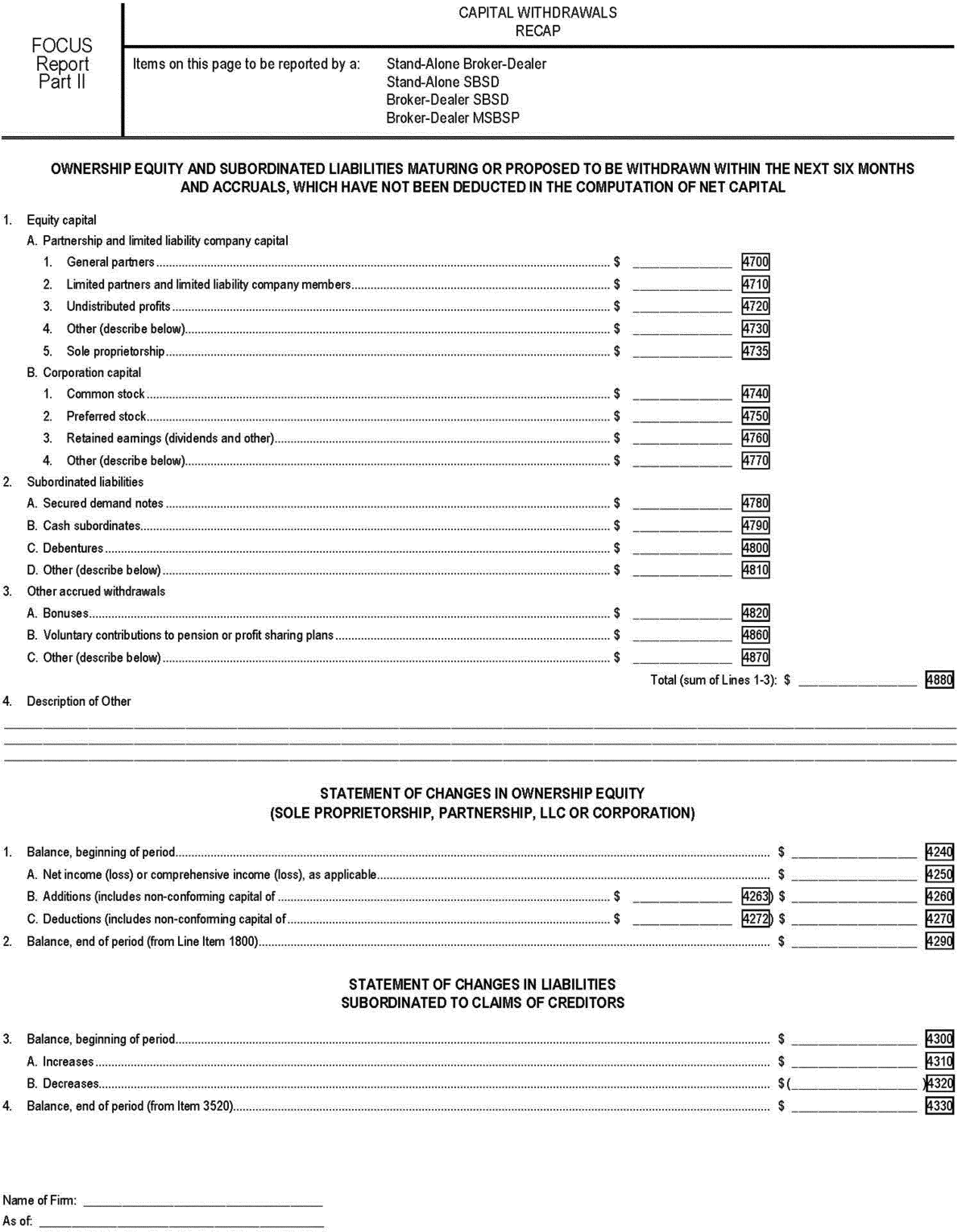 Back to Citation917. See FOCUS Report Part II, as amended, Capital Withdrawals, Capital Withdrawals—Recap, and Financial and Operational Data.