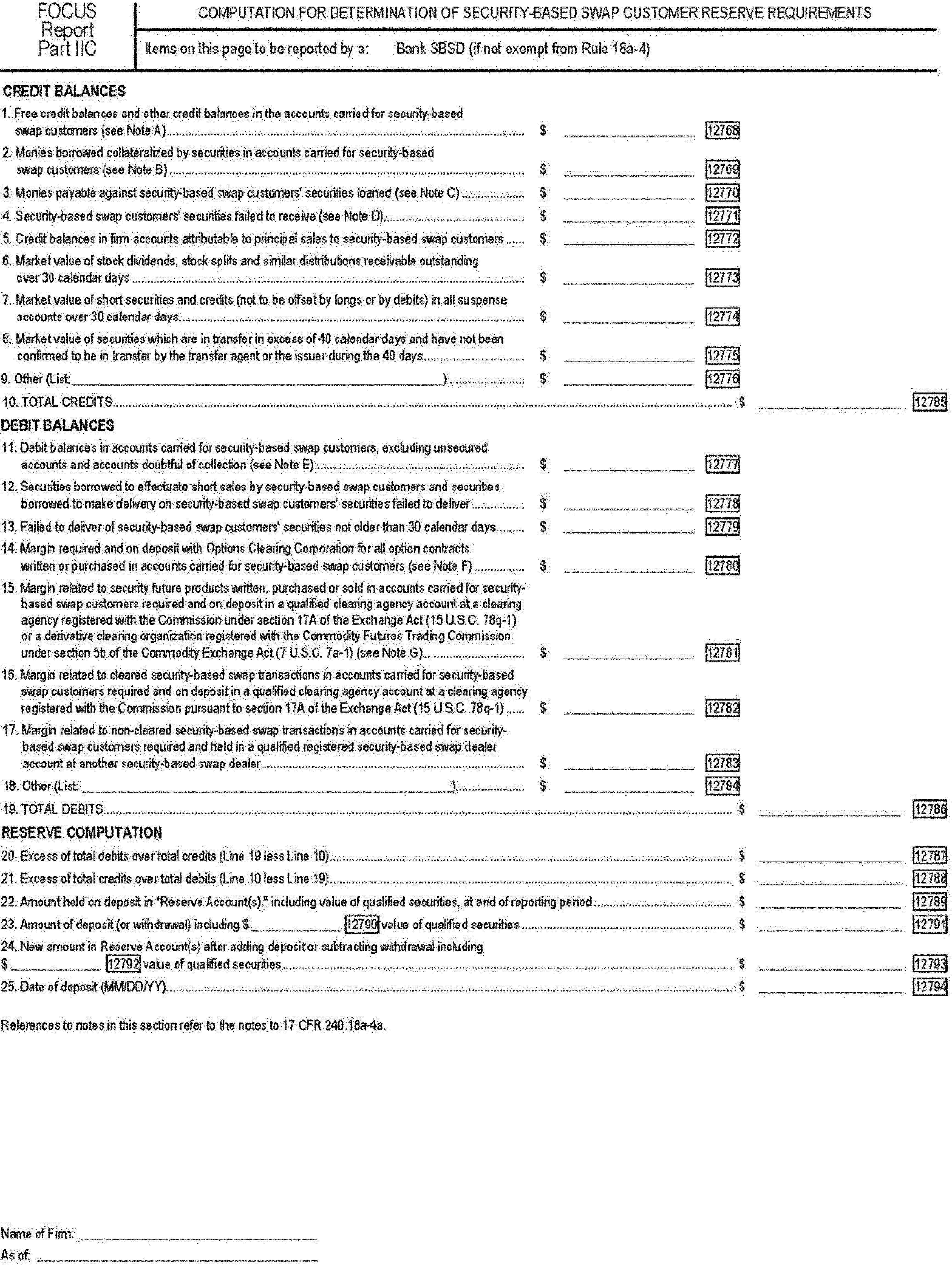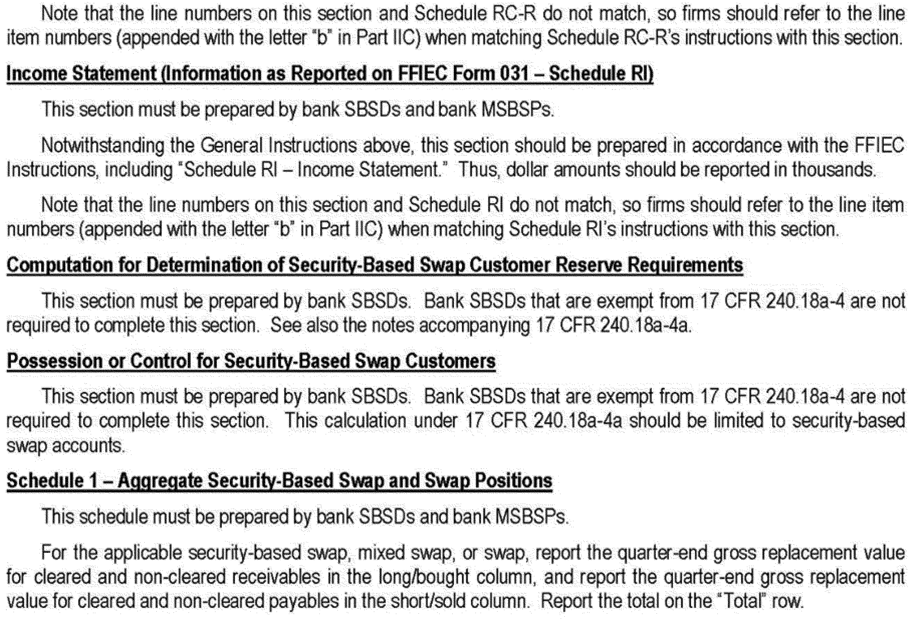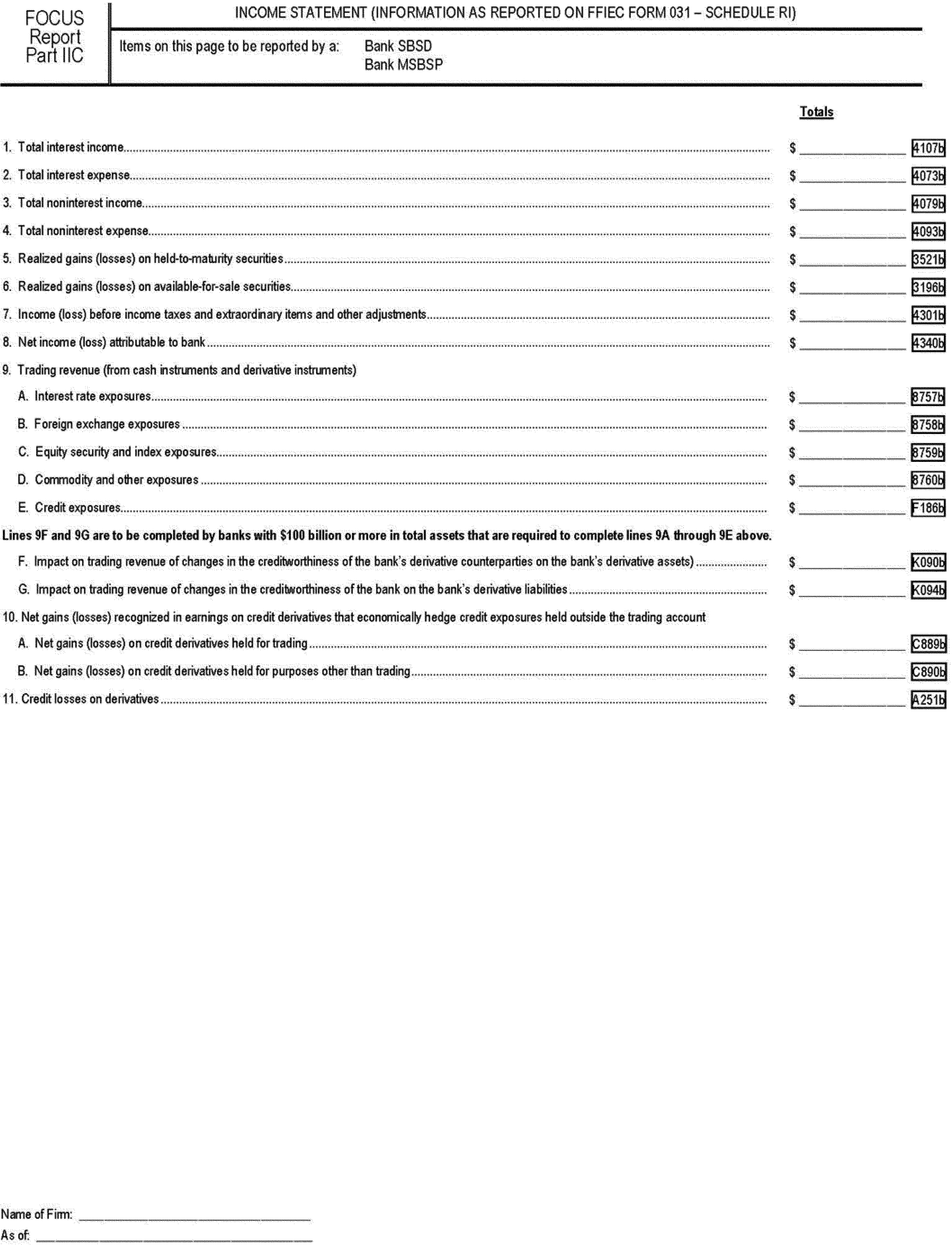 Back to Citation957. Whenever possible, the Commission has adopted the same line item numbers as are used for the call report (but appended with the letter “b” in FOCUS Report Part IIC) to facilitate a bank SBSD's or bank MSBSP's use of data from the call report.