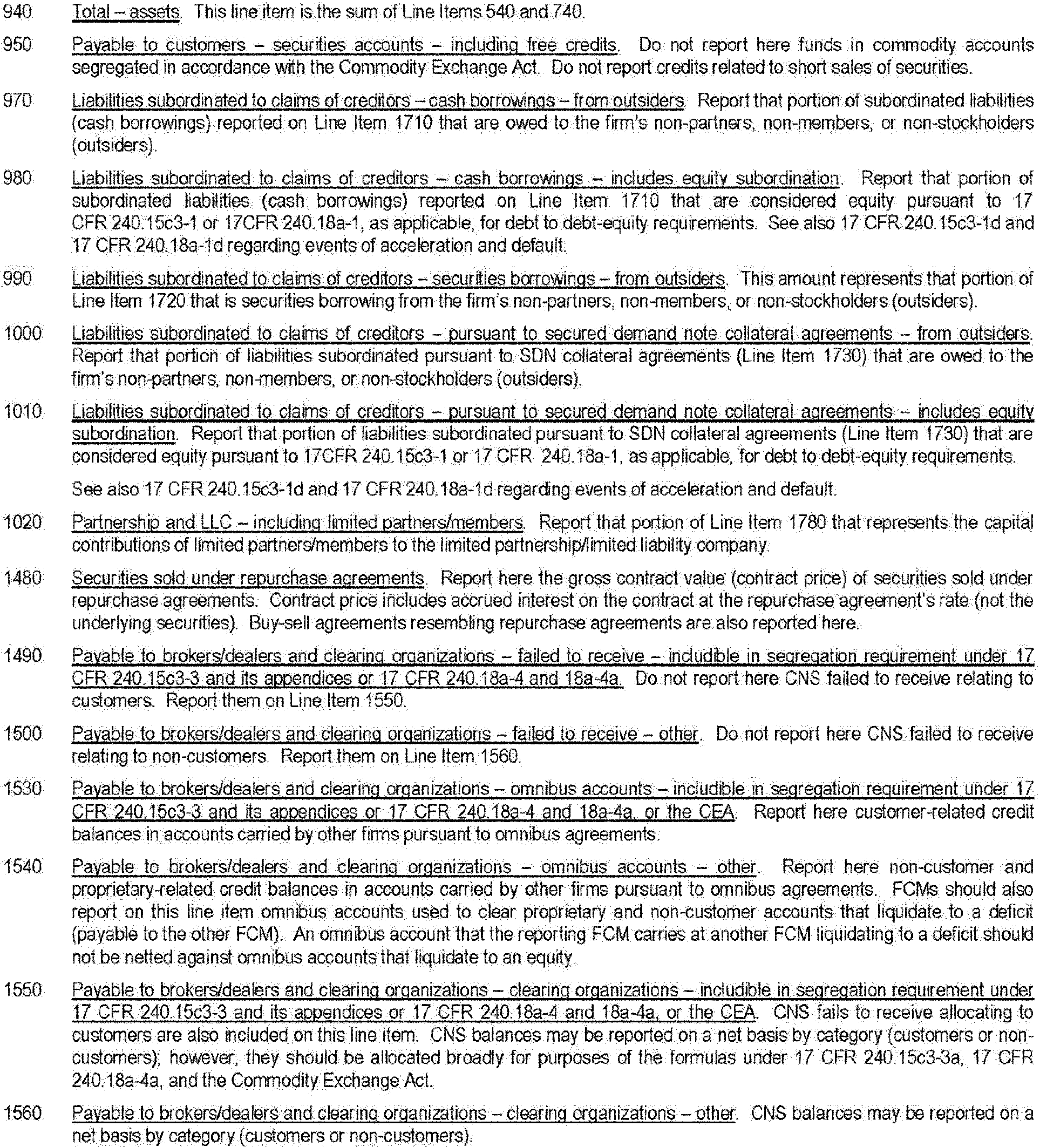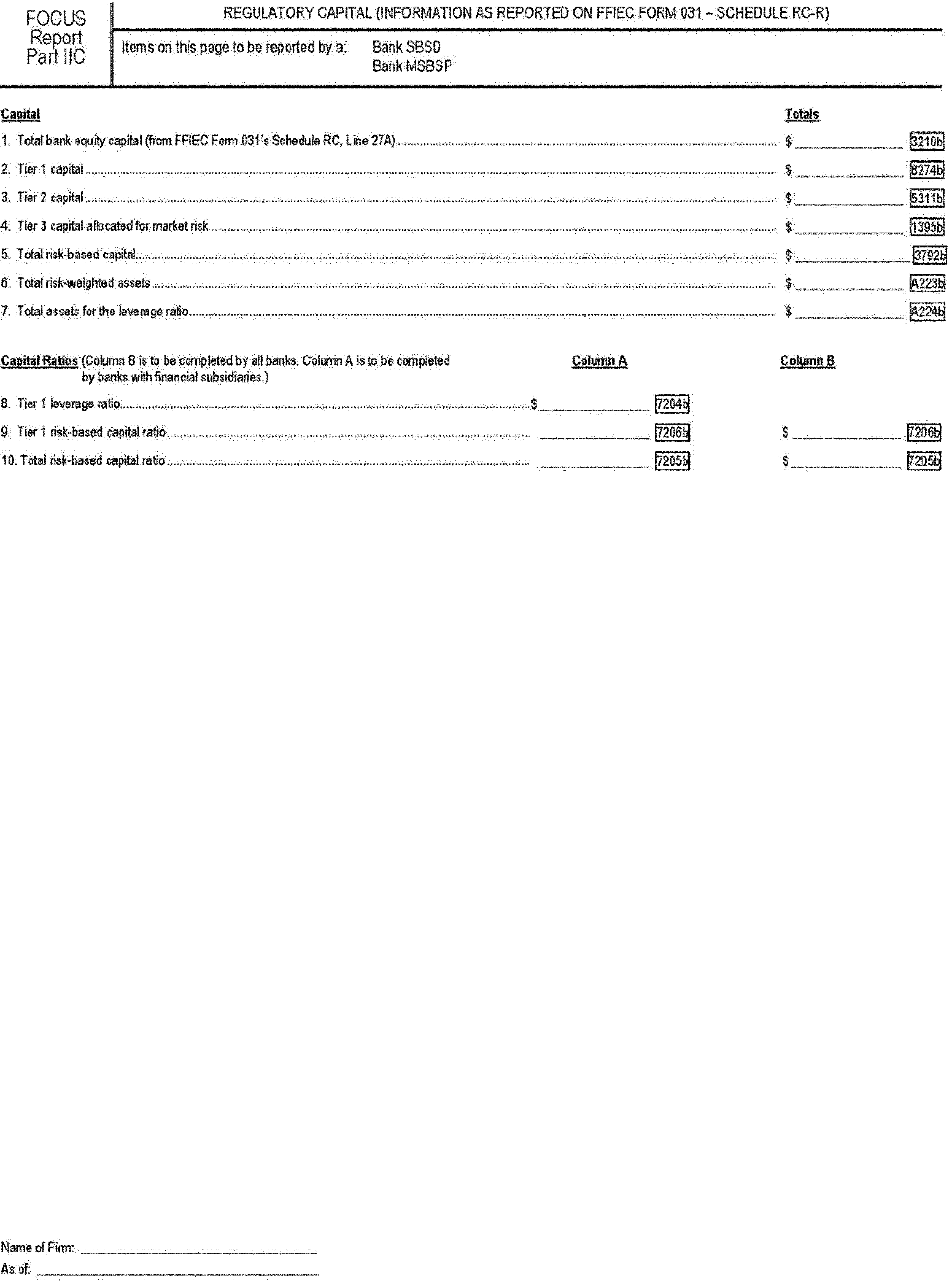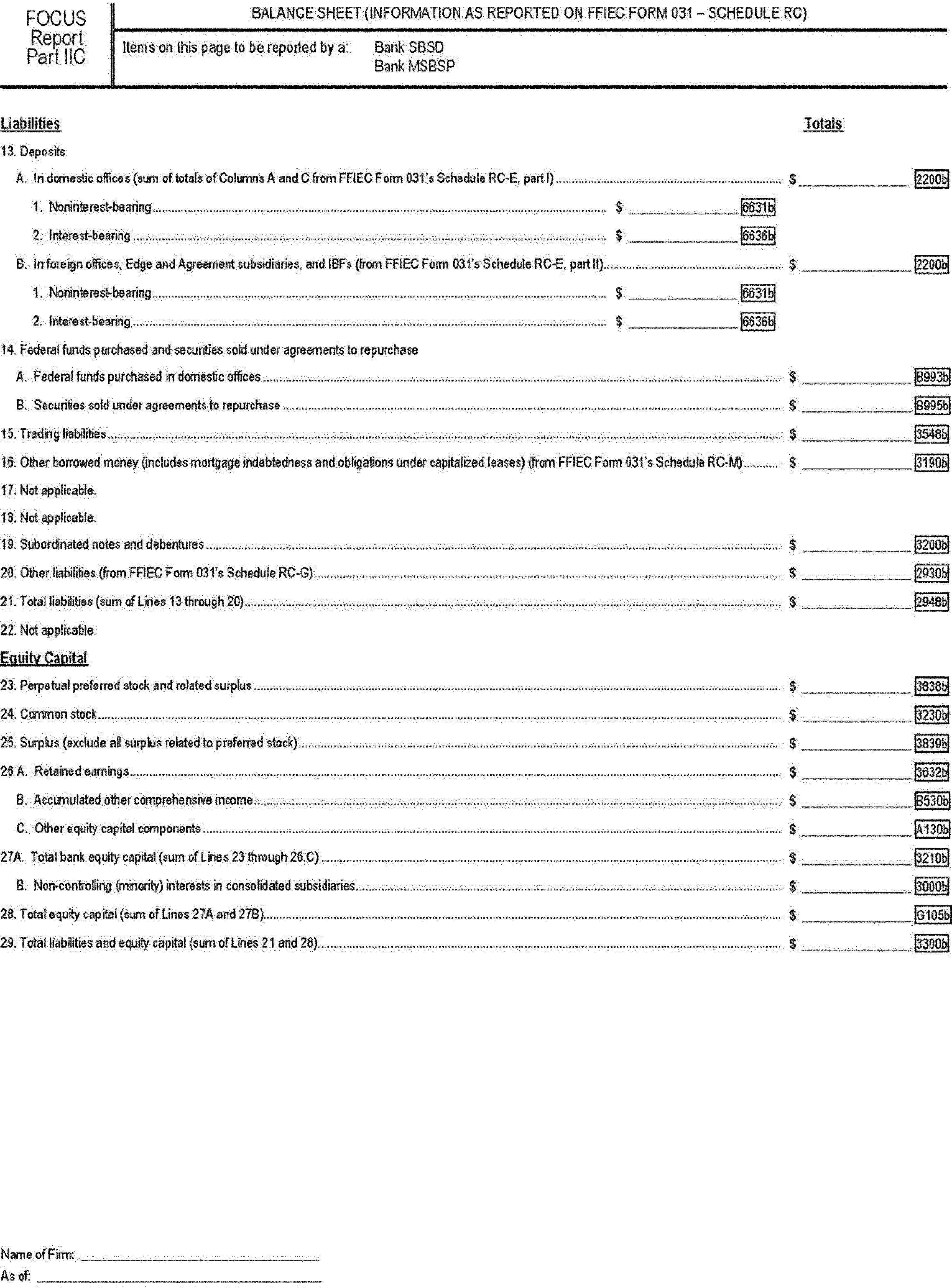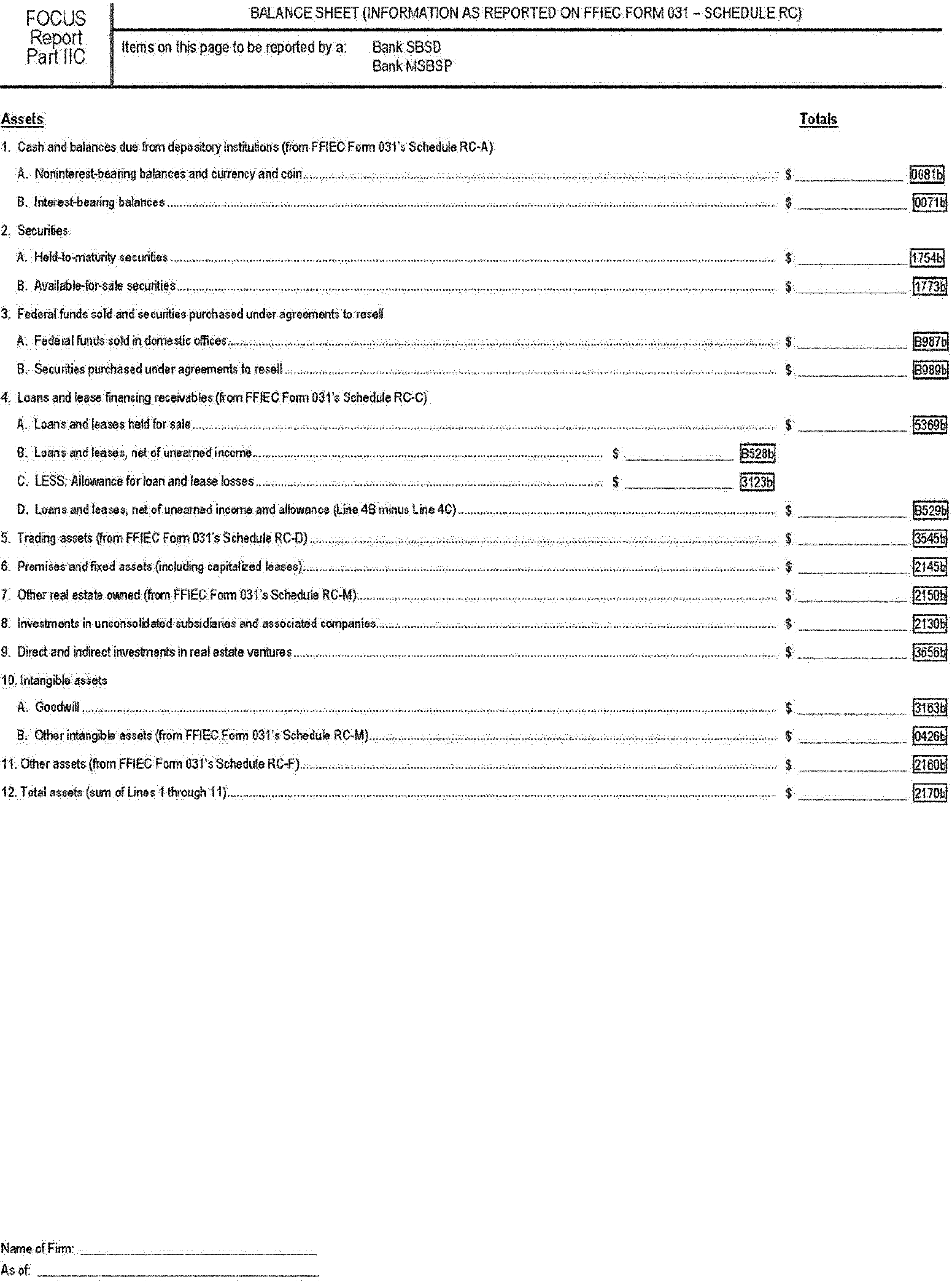 Back to Citation957. Whenever possible, the Commission has adopted the same line item numbers as are used for the call report (but appended with the letter “b” in FOCUS Report Part IIC) to facilitate a bank SBSD's or bank MSBSP's use of data from the call report.
