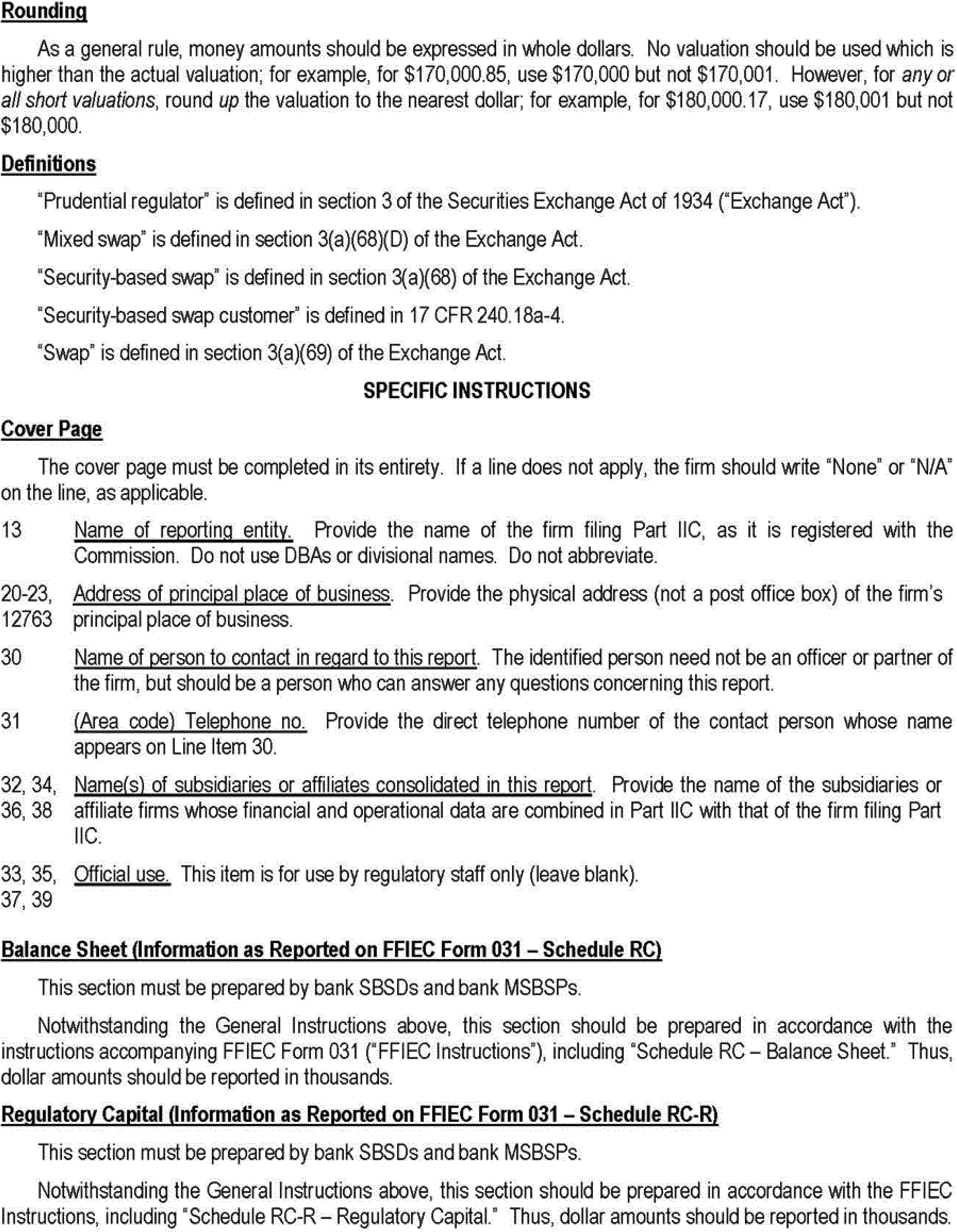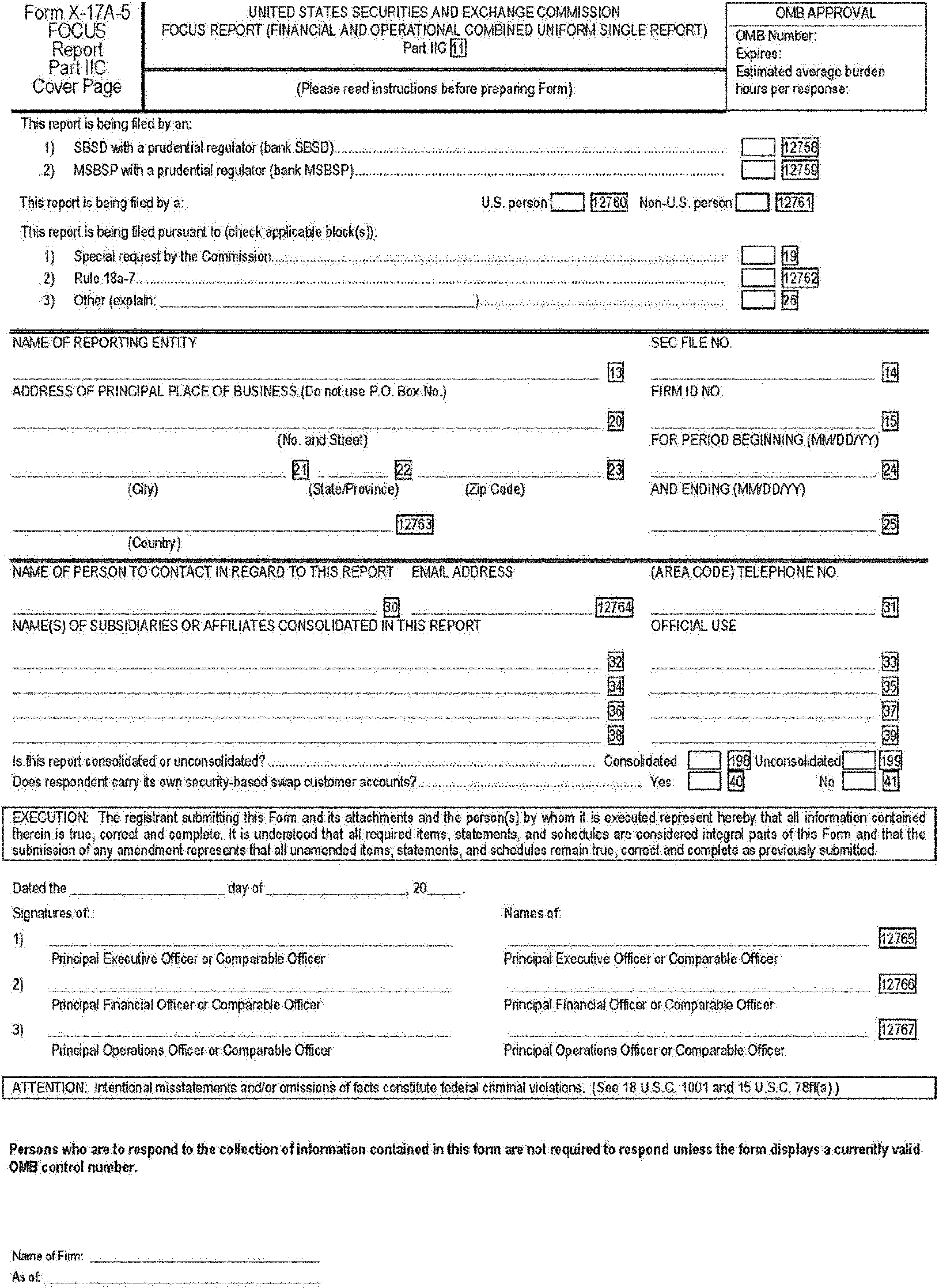 In this document, the Commission is amending certain existing rules and adopting new rules. In particular, the Commission is amending existing rules 17 CFR 240.17a-3 (“Rule 17a-3”), 17 CFR 240.17a-4 (“Rule 17a-4”), 17 CFR 240.17a-5 (“Rule 17a-5”), and 17 CFR 240.17a-11 (“Rule 17a-11”), and adopting new rules 17 CFR 240.18a-5 (“Rule 18a-5”), 17 CFR 240.18a-6 (“Rule 18a-6”), 17 CFR 240.18a-7 (“Rule 18a-7”), 17 CFR 240.18a-8 (“Rule 18a-8”), and 17 CFR 240.18a-9 (“Rule 18a-9”). The amendments and new rules establish recordkeeping, reporting, and notification requirements for SBSDs and MSBSPs and securities count requirements for stand-alone SBSDs (collectively “recordkeeping and reporting requirements”). The amendments to Rules 17a-3 and 17a-4 also establish additional recordkeeping requirements applicable to stand-alone broker-dealers to the extent they engage in security-based swap or swap activities. The Commission also is adopting largely technical amendments to Rules 17a-3, 17a-4, 17a-5, and 17a-11 as well as a conforming amendment to existing rule 17 CFR 240.17a-12 (“Rule 17a-12”).[13] Further, the Commission is adopting amendments to Parts II and III of the Financial and Operational Combined Uniform Single Report (“FOCUS Report”),[14] and adopting Part IIC of the FOCUS Report. Part II of the FOCUS Report, as amended, and Part IIC of the FOCUS Report, as adopted, will be used by registrants to report financial and operational information. Part III of the FOCUS Report will accompany the annual reports that certain of the registrants will file. The Commission also is amending existing rule 17 CFR 240.3a71-6 (“Rule 3a71-6”) with respect to the cross-border application of the recordkeeping and reporting rules and the availability of substituted compliance.