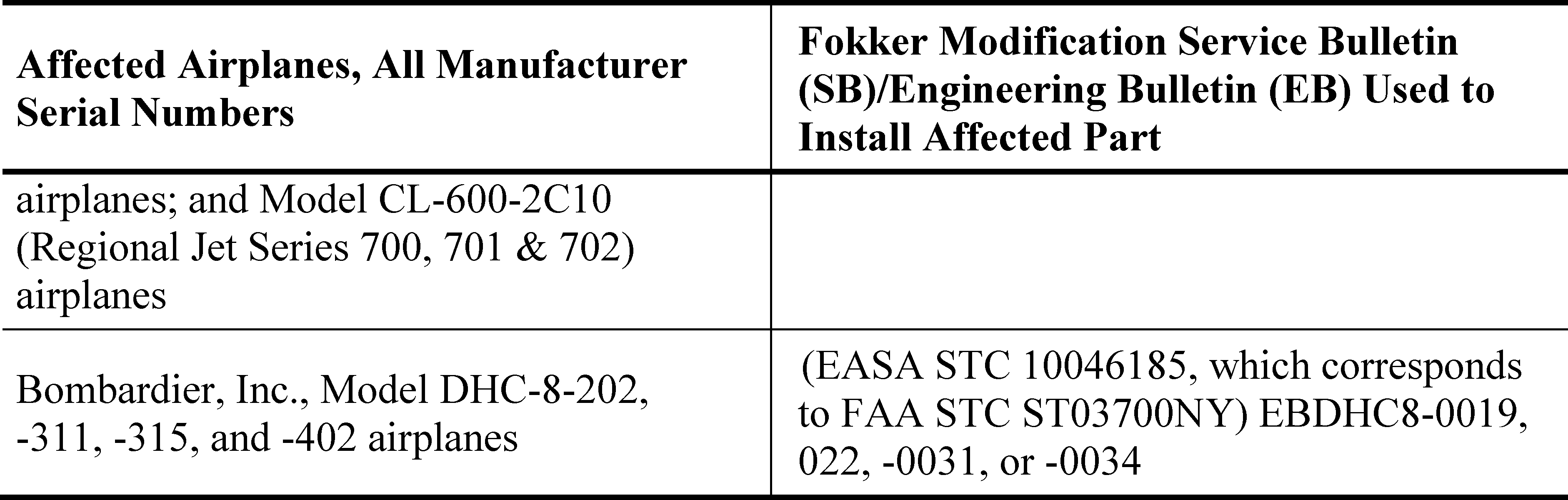 - Bombardier, Inc., Model CL-600-2C10 (Regional Jet Series 700, 701 & 702) airplanes.